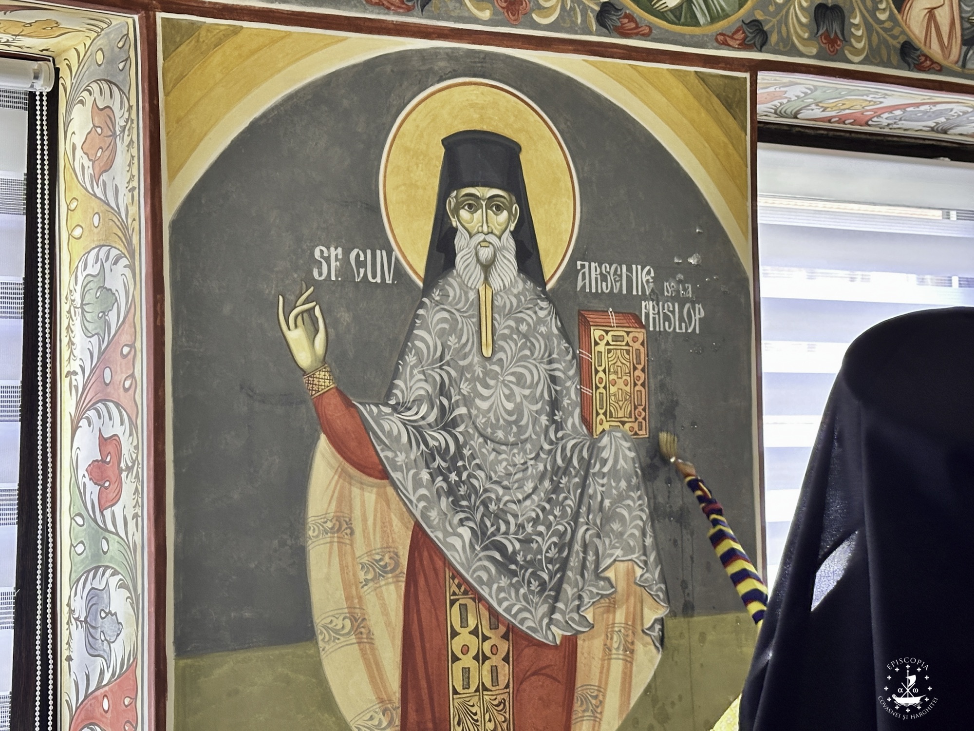 După oficierea Sfintei Liturghii, Preasfințitul Părinte Andrei a săvârșit slujba de sfințire a picturii din trapeza Mănăstirii.